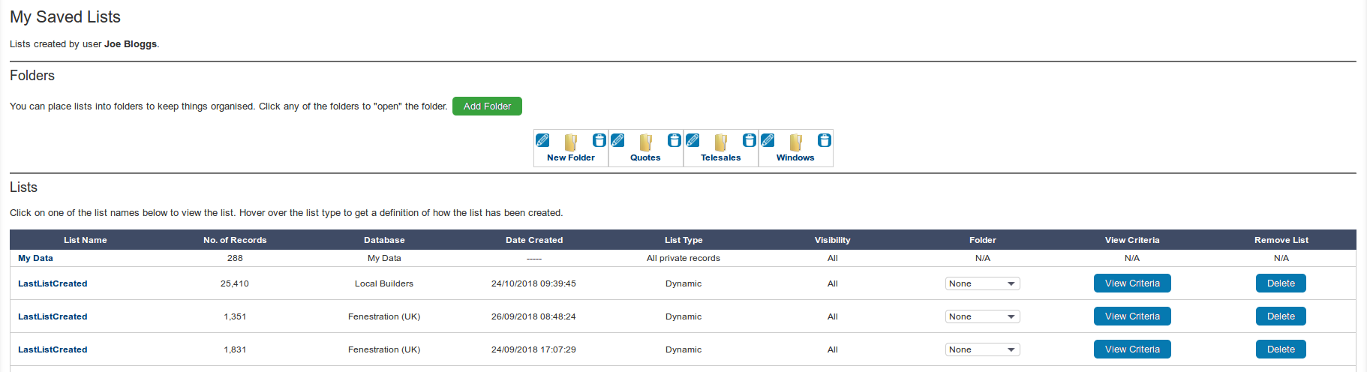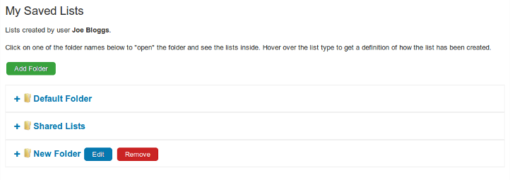 By default, when you click on “Saved Lists” Salestracker shows folders in a format called an “accordion” – you click the name of the folder and it expands to show the lists within it. However, there is an alternative view called “icons”, where folders are displayed as clickable icons.