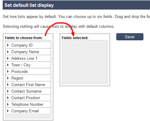 To restore the list display to default, simply remove all of the items from “Fields selected” by dragging them back into “Fields to choose from” and then clicking “Save“.