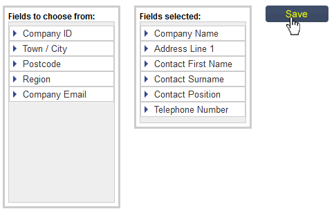 Please note that we recommend having the company name as one of the fields, as the name is what you click on to view the details of a company record. Without this, you will not be able to view records!