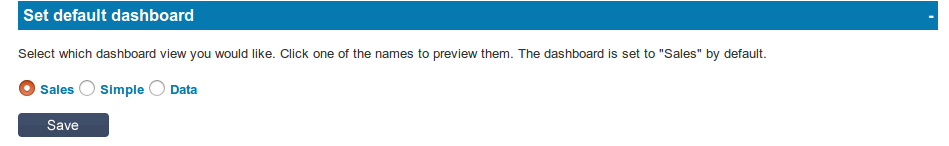 You will be presented with various options. To preview them, click one of their names. To select, click the circle next to the dashboard you want and then click “Save“.