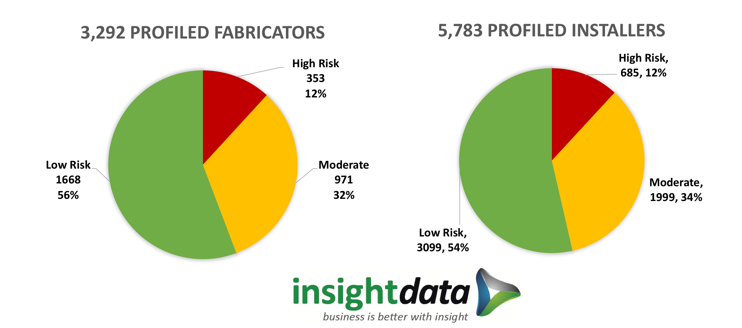 However, Insight Data’s analysis also pointed to 59% of fabricators and 53% of installers as healthy with a low credit risk.
