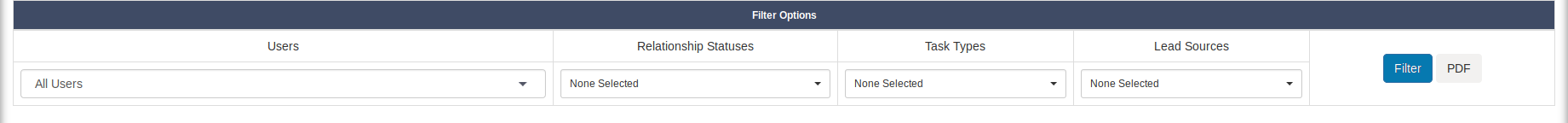 If you require a PDF of the report, just click the “PDF” icon next to the “Filter” button. Salestracker will then generate a PDF.