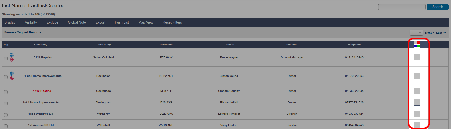 The list highlighter can be used to visually keep track of records in a list e.g. you could use it while doing telesales to highlight which records have been called, which ones need calling back, which ones cannot be reached, etc.