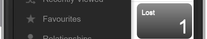 You will be presented with the favourites panel, a list of records you have marked as “favourite”. You can click on any of the records listed to be taken through to the full record. Records with relationships are highlighted with a blue relationship icon, and records with leads are highlighted with a red leads icon.