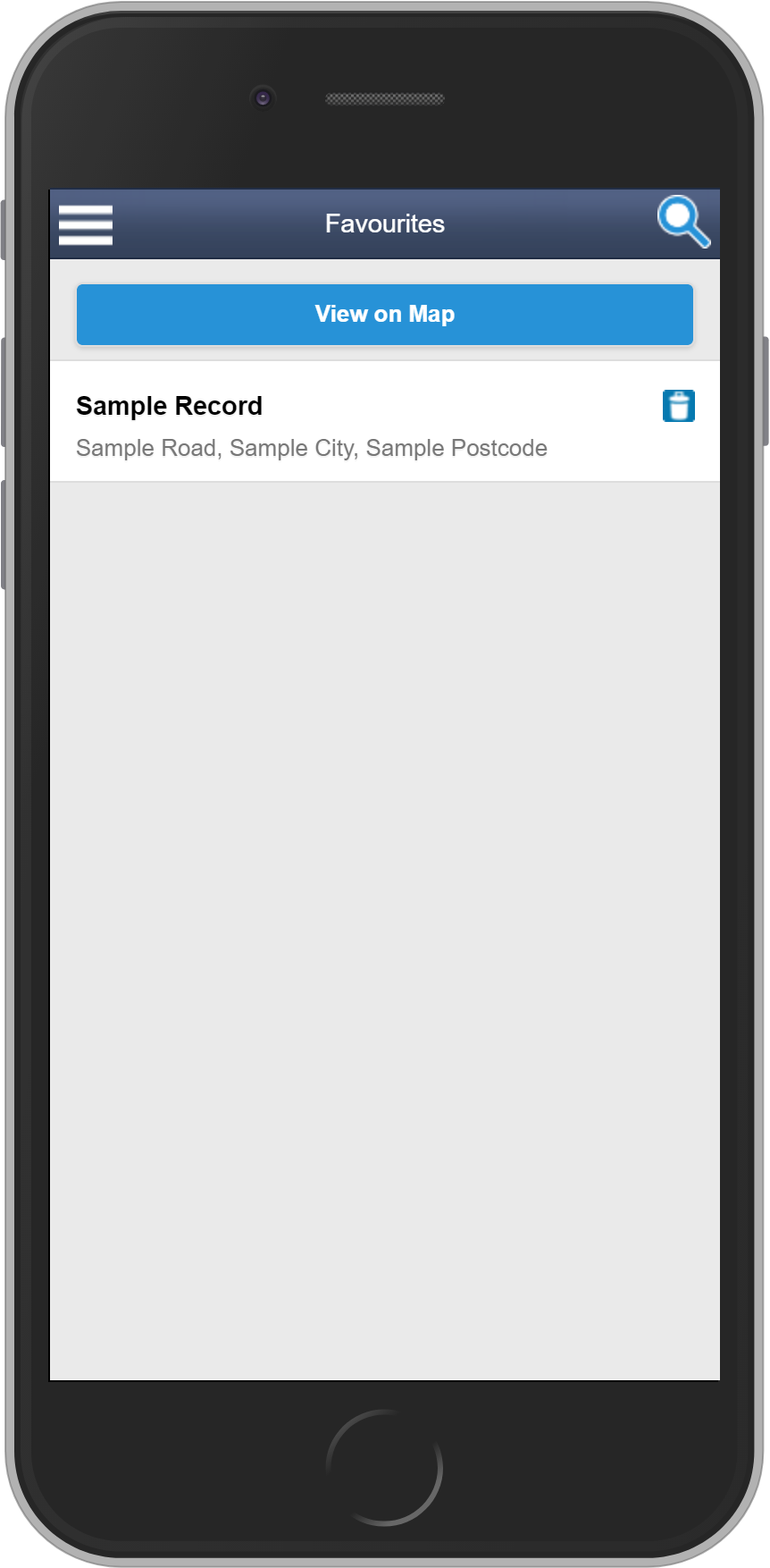 To view your favourites, either tap the “Favourites” item in the menu or tap the “Favourites” button on the dashboard.