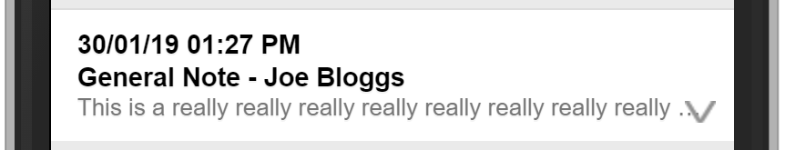 This tab is functionally the same as the Activity tab on the desktop version (read this article for more information). You can view and add notes here as required. Larger notes will feature an “expand” button to expand the note in full.