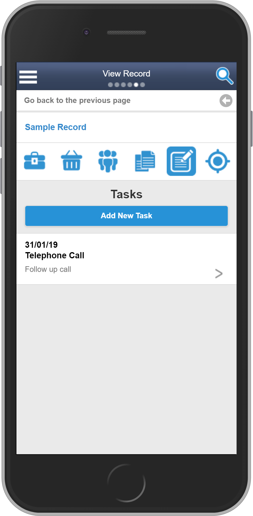 Find the record you wish to add the task to, and then tap the task icon shown above. This will open the tasks tab.