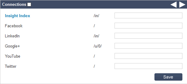 This widget allows you to record social media links related to the company as required – simply type them into the relevant box and click the “Save” button.