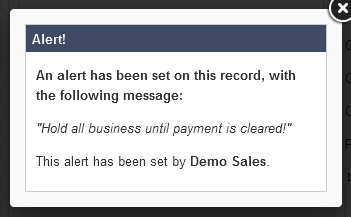 Fill in the details of the alert and then click “Create alert” to set it. Now whenever another user visits this record, they will see the alert message pop up on the record.
