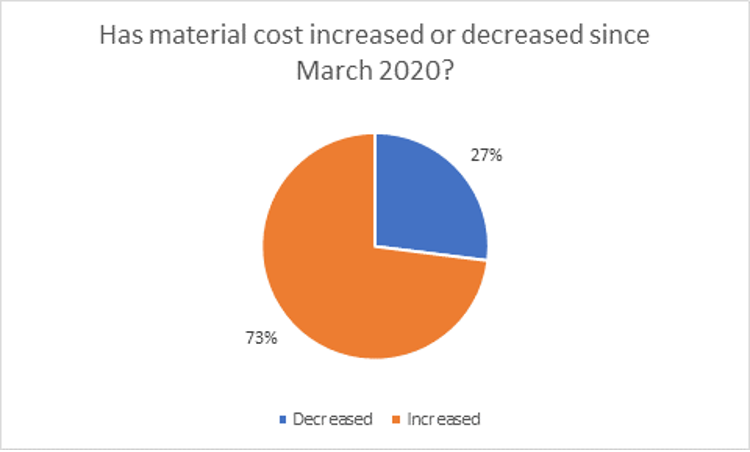 When there are less fabricators, prices can be increased because the surviving fabricators have a monopoly on total output. Alongside the increased interest in glazing, which has been seen since March, we know that when demand increases and supply remains the same, or even decreases, with big fabricators going bust, the higher demand leads to a higher equilibrium price. 73% of installers noticed an increase in price since March 2020.